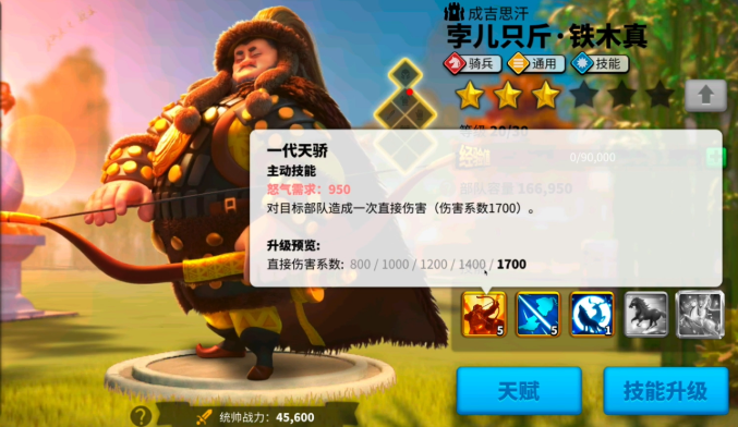 如果喜欢灵活打法,曹操配拜巴尔会很顺手。曹操的移速加成和骑兵属性强化能放大拜巴尔的机动优势,脱战后配合拜巴尔的回血和加速,扫田和骚扰效率极高。不过这对组合的输出略逊于铁木真体系,更适合小规模遭遇战或资源区干扰。拜巴尔虽然是紫将,但觉醒后强度不输部分橙将。搭配时优先考虑技能联动和兵种适配性,比如避免用步兵橙将混搭骑兵。天赋记得点骑兵系和技能系,攻城天赋收益太低不用考虑。