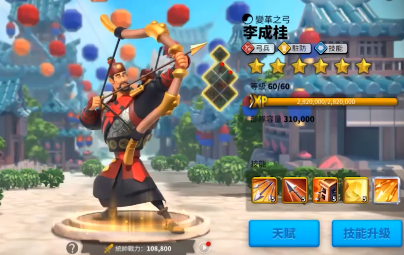 海尔曼可与熙德组成双弓组合,利用熙德的增益效果弥补输出短板;或与李成桂配合,通过范围伤害扩大战场影响力。当前版本骑兵与步兵仍是主流,弓兵整体环境偏弱势,因此海尔曼更适合作为战术性补充而非核心主力。若玩家已拥有成型的骑兵或步兵体系,可暂缓培养海尔曼,优先满足主力队伍需求。