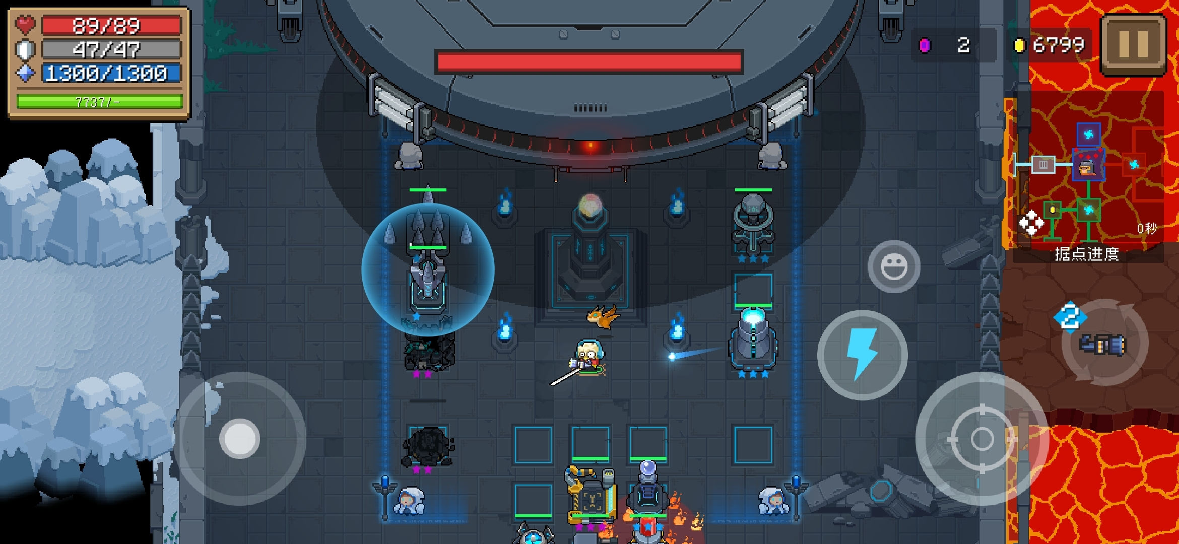 武器选择上,推荐用穿透性强的连射轨道炮或者高爆发武器,清弹幕的同时能快速拆罩门。近战武器建议选范围大的,比如咖喱棒,既能挡子弹又能蹭伤害。天赋优先选激光加粗、蓄力加速和连射增加,冰盾也别忘带,不然被冰冻怪干扰会很麻烦。蓝量问题母舰的激光能回蓝,没蓝了就故意蹭一下激光,瞬间回满继续输出。