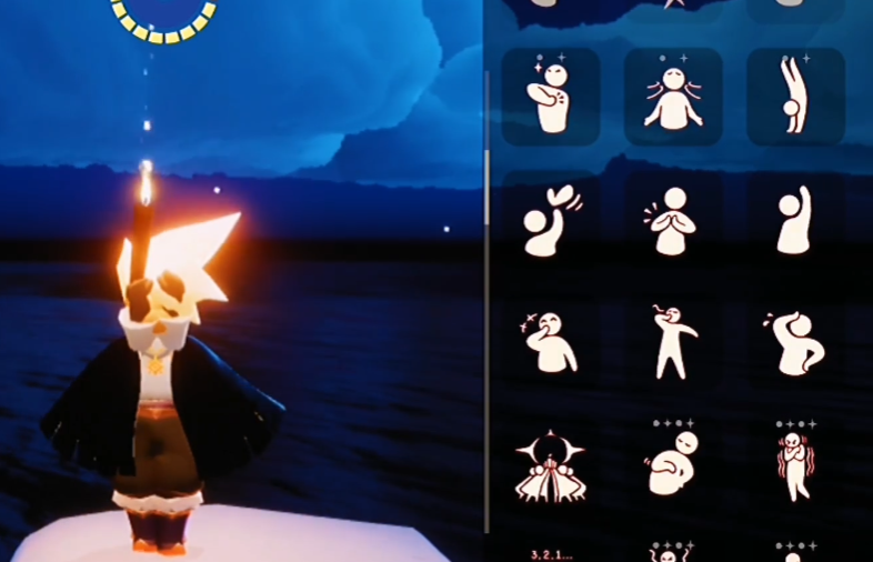成功启动升降台后,玩家会被带到上层区域,需要点燃周围一圈蜡烛。当所有蜡烛被点燃后,举火先祖会自动出现,玩家可以与之互动并解锁举火动作。需解锁该先祖后,还需消耗一定数量的白蜡烛和红蜡烛才能兑换其提供的物品,包括随机魔法(6白蜡烛)、永久光翼(1红蜡烛)以及免费的举火动作。