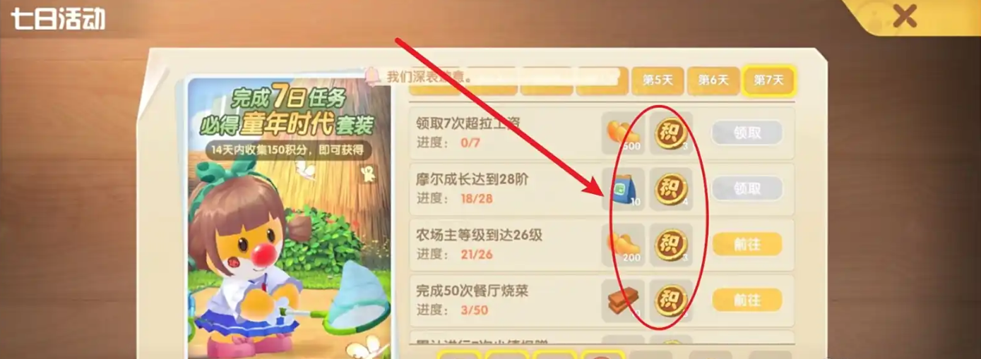 七日积分是新手目标活动中的一种特殊奖励货币,主要用于兑换限定服饰和道具。玩家需在游戏界面右上角点击新手目标进入活动页面,通过连续七天完成每日任务积累积分。积分达到80时可兑换50金豆,而攒满150积分则可解锁完整的童年时光套装,包括童年小辫、瓢虫贴纸、娃娃鞋等七件服饰,集齐后还能额外增加50点总魅力值。该活动通常有明确的时间限制,例如早期版本截止于6月15日,过期后未使用的积分将失效,因此需及时兑换。