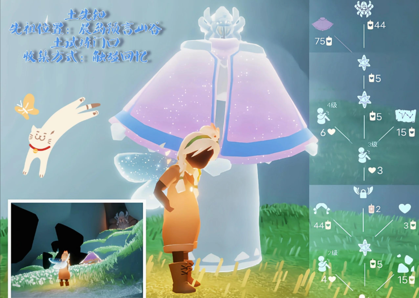 鞠躬动作的获取位置存在版本差异,早期需在霞谷飞行赛道的左侧长阁楼回廊寻找蓝光,后续版本调整至霞谷城的二级台阶上方。玩家需飞至台阶左上角触碰先祖光点,完成引导任务后返回终点兑换。一级鞠躬动作需消耗3根蜡烛,升级至二级需额外资源。该动作实用性较高,适合表达谢意或社交场合。