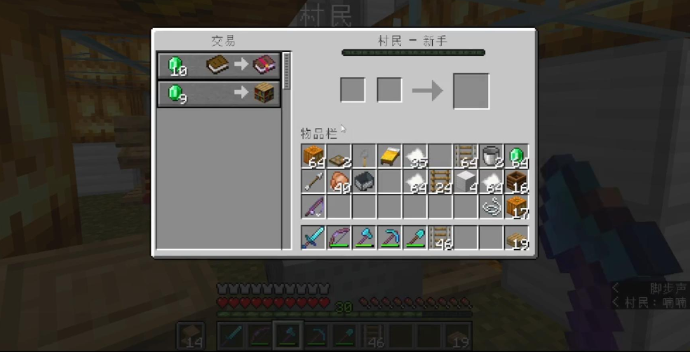 不同职业的村民对应特定的交易选项,玩家可以用绿宝石或其他物品与他们交换资源。图书管理员提供附魔书交易,牧师收购腐肉和金锭,农夫接受农作物兑换,铁匠则出售武器装备。交易系统简化了稀有资源的获取过程,同时交易组合会随互动次数更新变化,增加了策略性。只有成年村民能交易,且每种职业村民的交易内容固定但价格存在随机性。