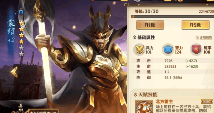 袁绍在游戏中是个非常实用的主将,尤其适合喜欢召唤流和士兵强化的玩法。他的核心技能北方霸主能让场上每个士兵都提供攻击和防御加成,士兵越多效果越强,开局就能让部队战斗力飙升。搭配袁绍时,记得优先选择能增加士兵数量的武将,比如黄巾流或者野兽流的主将,这样能最大化他的天赋收益。