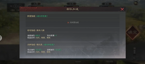 战法配置方面,旗本八骑主要发挥其高速机动特性,无需投入高级战法资源。常规配置可选用基础输出类战法如强攻、截断,或携带迫近、盾拒等防御型战法提升生存能力。由于该队伍定位明确,不建议为其配置珍贵战法,保持低成本高效率的特点更为重要。在实际运用中,旗本八骑的战法搭配应以不影响主力队伍资源分配为前提。