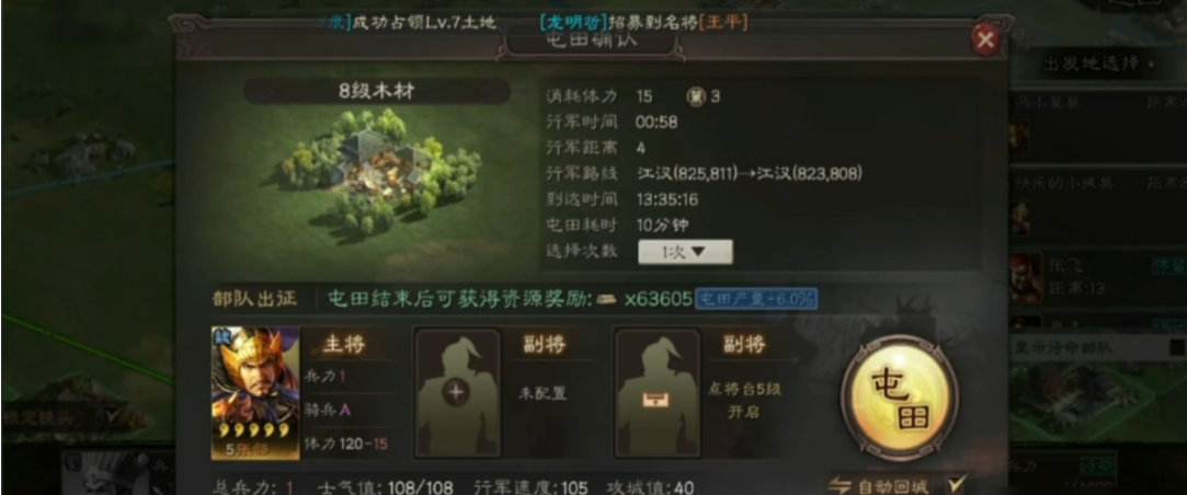 快速占领资源地,首先得做好充分准备。在行动前记得先侦查目标地的守军情况,了解敌方兵种和武将配置,这样才能针对性调整自己的队伍。优先选择兵种克制的武将上阵,比如用骑兵打弓兵、弓兵打枪兵、枪兵打骑兵,能大幅降低战损。同时确保主力武将的战法等级足够高,最好满级,装备也要搭配合理。兵力方面建议至少达到1.2万以上再去挑战6级地,否则容易翻车。侦查时6级地只能看到第一波守军,第二波是隐藏的,所以尽量留足余力应对突发情况。