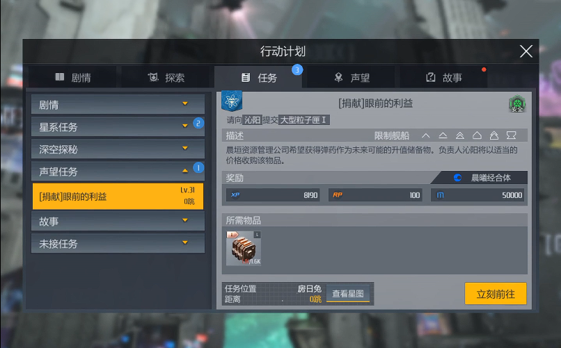 战斗任务建议组队完成以降低舰船损毁风险;探索任务可借助隐身舰船规避敌对NPC干扰;捐献任务需提前储备常用物资如弹药或图纸。每周任务刷新后应优先完成高收益任务,避免因时间不足浪费机会。声望等级达到崇敬后,可解锁稀有代理人任务。