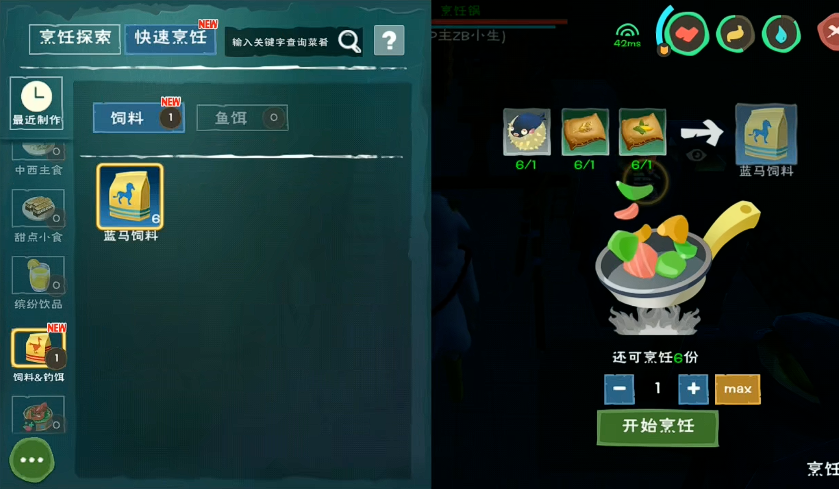 制作蓝马饲料需要河豚、玉米饲料包和小麦饲料包。玉米和小麦通过采集就能获得,记得先把它们合成饲料包。河豚稍微麻烦些,得去郁金香平原的湖泊用蚯蚓钓鱼,运气好的话半小时能钓到两三条。准备好8-10包饲料就够用了,记得别直接喂河豚,那样会浪费材料。
