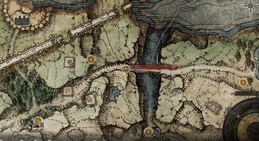 探索圣人桥下方的区域,首先需要明确具体位置。圣人桥位于宁姆格福西部的风暴山丘东北方向,从关卡前方赐福点出发,沿着主路向北走就能看到这座石桥。桥本身并不复杂,但下方隐藏的区域需要一些技巧才能到达。