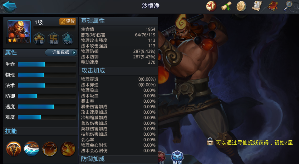 沙悟净定位为物理输出型战士,兼具坦克和控制能力,其核心优势在于持久战中的稳定表现以及技能附带的眩晕、减速效果。沙悟净的技能组包括降魔杖流沙河和九命念珠,其中降魔杖提供2秒眩晕控制,流沙河创造持续伤害与减速的战场环境,九命念珠则是蓄力型爆发技能,最高可积攒9颗念珠造成高额物理伤害。