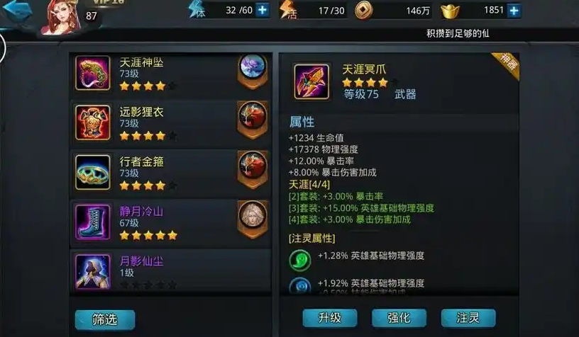 武器推荐疾风骤雨或同类穿透装以最大化伤害;衣服可选宝相袈裟或月影仙尘平衡血量与物理强度;饰品优先攻速属性如鸾飞凤舞,暴击装作为备选。头盔和鞋子同样以穿透效果为主,例如珍珠头带和狞牙索命。天赋加点方面,4级内丹激活降魔伏虎提升技能伤害,8级内丹解锁降魔诛天扩大眩晕范围,24级内丹一念之差增加穿透属性,48级内丹邈若流沙延长流沙河持续时间。