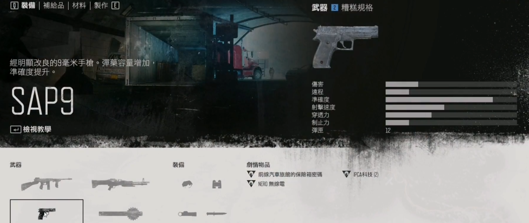 刚开始时,咱们能接触到的武器有限,但有几把性价比极高的装备值得优先考虑。SAP9手枪是早期最容易获得的近战武器之一,虽然杀伤力不算顶尖,但弹药充足且操作简单,适合用来对付落单的敌人或紧急自卫。AK47虽然只是初级武器,但伤害稳定,打怪效果不错,尤其在资源紧张的前期非常实用。