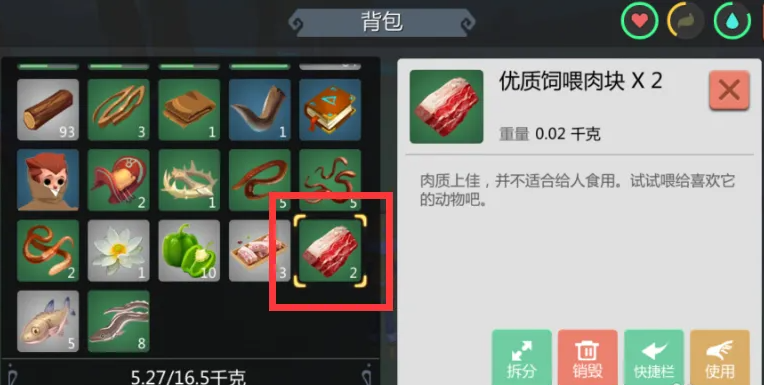 拿到饲喂肉块之后,你就可以用它来制作一些实用的食物啦,比如把饲喂肉块和生牛排一起加工就能做出怪味肉块,吃了可以恢复40点食物值呢。还有个叫怪味零食的玩意,需要搭配章鱼足和牛肉来制作,不仅可以填饱肚子还能补充水分,在冒险过程中能帮你省下不少找吃的功夫。这些食物虽然不是主力回复道具,但在关键时刻应急还是挺管用的。