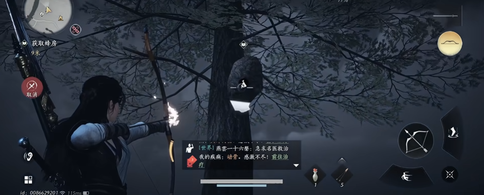 蜂巢是提升志趣属性中眼力的重要资源,但采集时需格外小心。蜂巢通常分布在悬崖峭壁或高耸树木上,外观呈棕色,周围环绕着泛光的小蜜蜂。直接靠近会触发蜜蜂攻击并导致中毒,因此需要提前准备火箭或弓箭。用火箭射击蜂巢可以烧死蜜蜂,等待3秒左右确认安全后即可靠近采集。若使用弓箭,则需远程击落蜂巢后快速拾取,但仍有被蛰的风险。