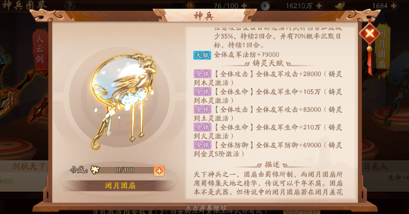 刘备的神兵选择直接影响其战斗表现,闭月团扇作为金神兵能在刘备首次攻击时让怒气最高的敌人及其周围目标中毒两回合,另有概率附加沉默效果,有效限制敌方怒气技能的释放。另一种常用神兵是苍翠绿绮琴,当己方人数不高于敌方时,刘备的每次攻击都能治疗血量最低的两名武将并提升他们的防御力。这些神兵的技能互补,让刘备在快节奏战斗或持久战中都能灵活适应。玩家需要根据战斗需求选择合适的神兵,例如在面对爆发型阵容时优先使用闭月团扇打断敌方节奏,而遭遇消耗型队伍则切换苍翠绿绮琴维持团队状态。