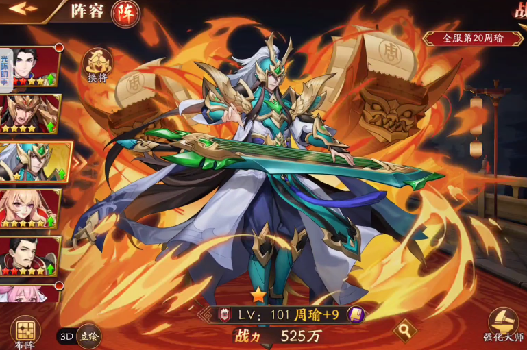 赵云作为战士型核心,其主动技能龙胆亮银枪在击杀敌人后能触发眩晕效果,配合被动勇者之魂可显著提升队伍的生存能力。关羽则以高爆发和斩杀特性著称,三国第一神刀技能能打出巨额伤害,被动万夫莫敌还能为全队增加攻击力。诸葛亮是阵容的战略枢纽,八阵图技能能在短时间内提升全队的攻击、防御和闪避,被动策略之主进一步强化团队输出效率。周瑜擅长范围伤害,赤壁战火能对敌军造成巨量灼烧效果,而张角的天灾降世则是强力的全屏AOE技能。若追求极致单体爆发,可选择吕布,其无双乱世技能通过消耗血量换取攻速和攻击力提升,配合被动吸血效果形成持续作战能力。