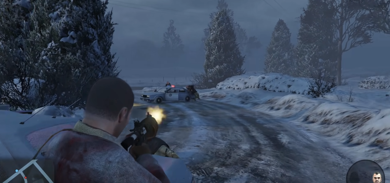 任务的核心难点在于撤离阶段的枪战和驾驶环节。银行后门的战斗需以石柱为掩体逐步清理警察,注意优先击杀持枪敌人。驾驶吉普车时需沿骑兵大道直行,遇到路障后立即右转进入小路,需预判火车通过时间避免碰撞。若车辆受损,需坚持原计划路线抵达接应点,途中崔佛会主动下车掩护,玩家无需等待可直接驶向目标区域。该关卡通过多阶段事件串联,完整呈现了角色背景与基础操作教学。