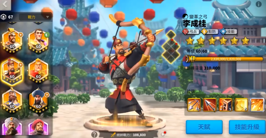 天赋配置需根据战场角色灵活调整,打野路线重点选择洞悉和战力清剿天赋,能显著提升体力利用效率。辅助路线必点刺笼之围天赋强化减速效果,配合技能加速特性形成持续控制。领袖天赋则通过增加部队容量发挥数量压制优势,适合大规模野战。三种天赋方案没有绝对优劣之分,实际应用中应根据联盟需求和个人战术目标进行动态调整。该武将的养成策略应注重技能优先级,1技能重箭千钧和2技能雷霆之势构成核心机制,建议优先升满。获取途径主要通过远征挑战第62关后的征服者勋章兑换,每日稳定获取三个头像的设定使其成为平民玩家最易觉醒的橙将。
