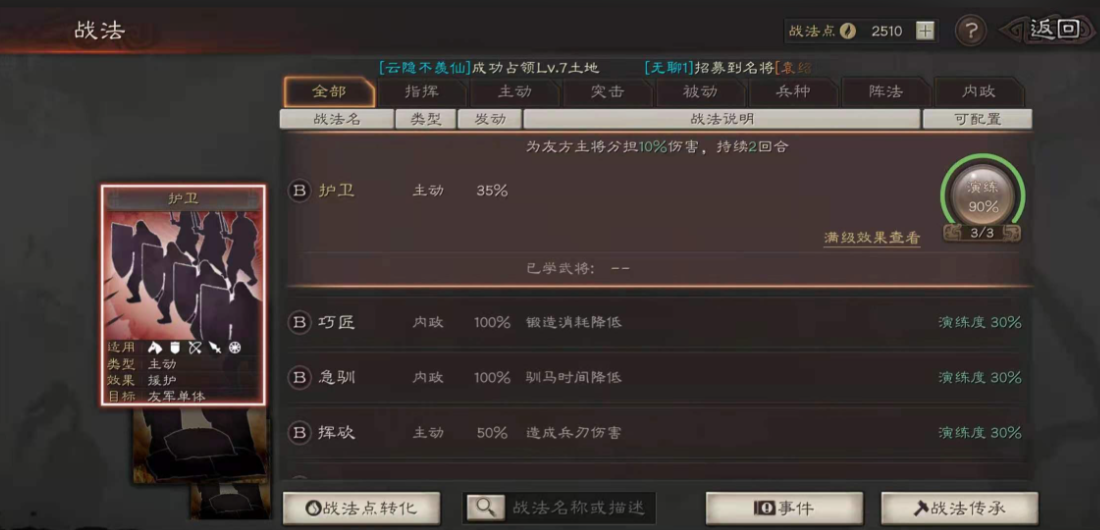 战法的搭配与优化直接影响武将的实战表现。五星武将的自带战法通常效果强大,但仍需根据阵容需求补充其他战法。输出型武将可搭配增伤或连击类战法,辅助型武将则适合携带治疗或控制类战法。战法等级也需优先提升,高等级战法效果更显著。传承战法是从特定武将中获取的稀有技能,合理规划战法传承顺序能有效避免资源浪费。