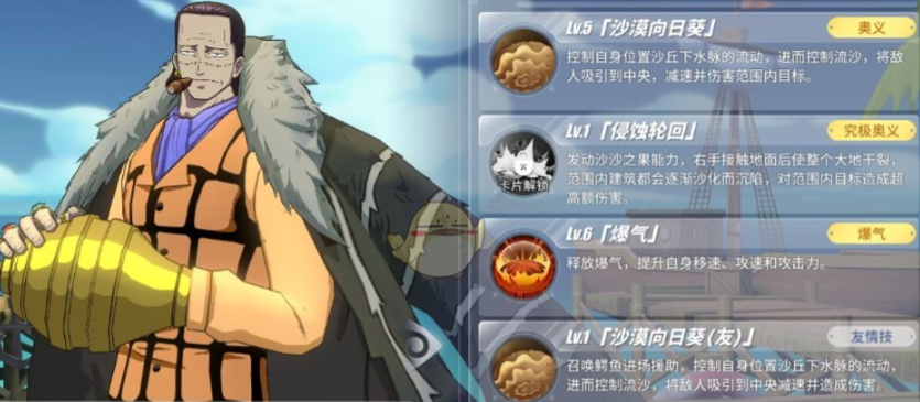 他的沙沙果实能力提供大范围控制与持续伤害,无论是PVE副本还是PVP竞技场,都能有效限制敌方行动并为队友创造输出环境。相比之下,艾斯依赖火系爆发但缺乏控场,艾尼路以雷系AOE见长但生存能力较弱。鳄鱼的辅助定位使其在版本迭代中始终保有竞争力,而输出型角色常因数值调整或新角色登场而贬值。