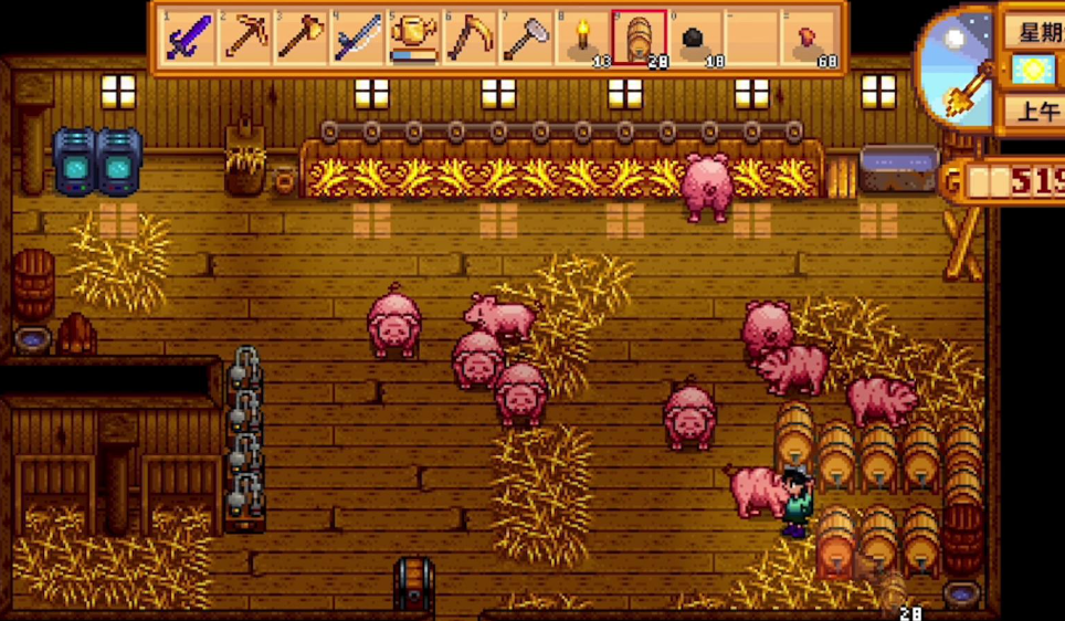 猪猪的幸福感是怀孕的关键,每天都要好好照顾它们。早上记得给它们喂饱干草,种点草料用镰刀收割就能自给自足。别忘了每天摸摸它们,梳梳毛,这样它们才会开心。畜棚也要保持干净,定期清理,不然猪猪生病了可没法怀孕。