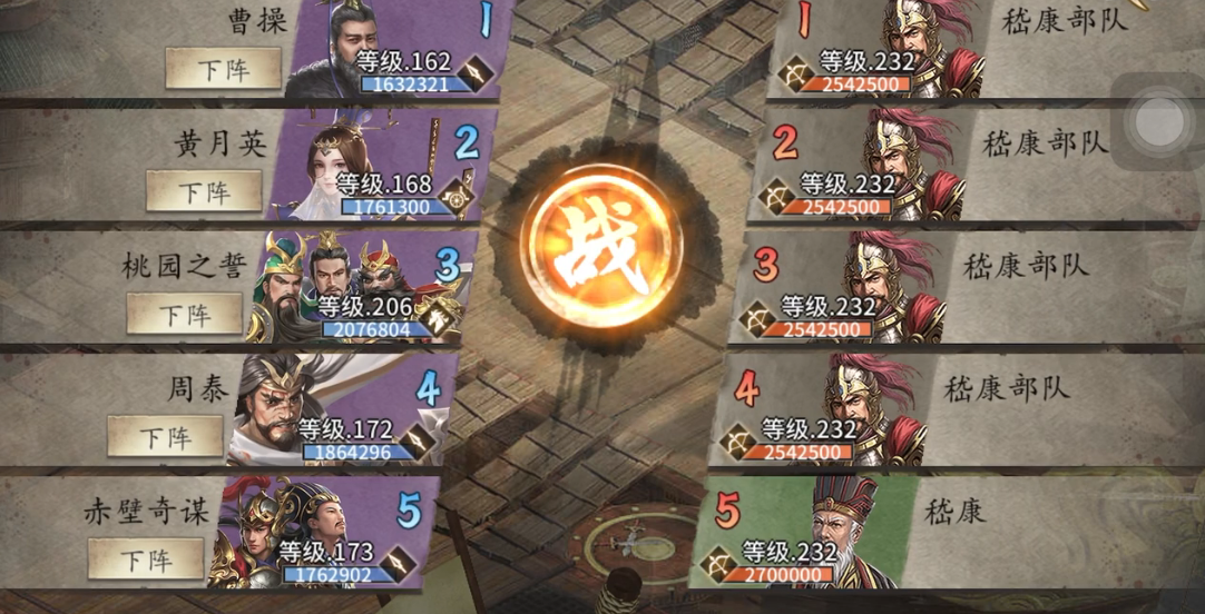 嵇康副本的特殊之处在于敌方战法伤害极高,所以咱们要特别注意保护主力输出。黄月英放在第二位最合适,因为她没觉醒时二车加的护盾会和曹操战法叠加,这样反而浪费护盾效果。记得让黄月英先用战术克制,等被克制时再放战法,这样输出才能最大化。曹操一定要带残三车,不然很容易被敌方战法直接秒杀,建议放在第三位,最后一排放战法能给队伍提供关键的保护。