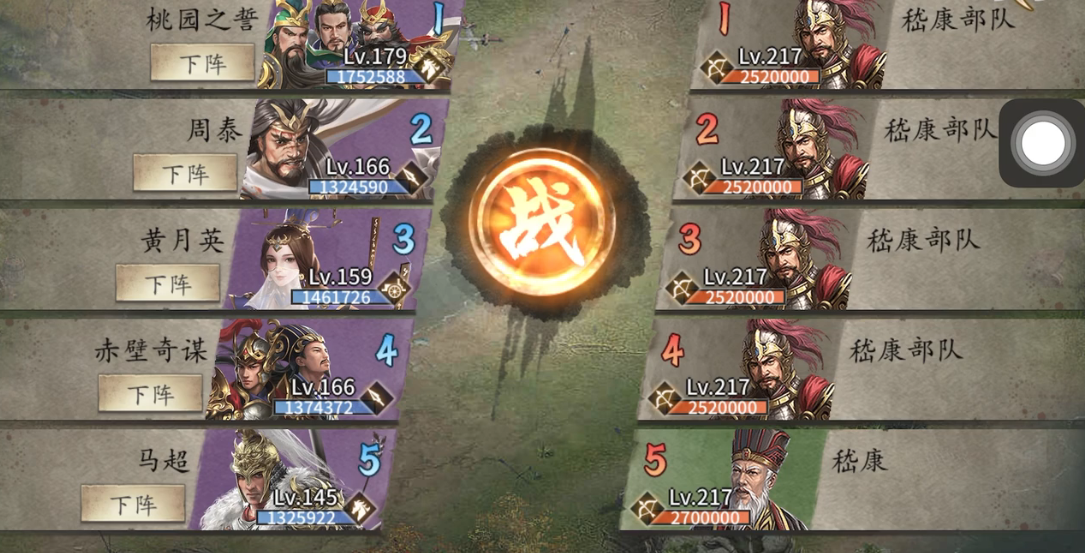 关羽作为主力输出需穿戴极驱虎套装,锋矢阵提升暴击率,副将孙权可提供额外增益。觉醒后的战法需精准命中满血NPC才能实现清场效果,若未触发觉醒则需重新调整战术。陆逊作为收尾武将使用极烛龙套装,残血三车配合诸葛亮副将实现火焰补刀,其战法燃烧效果可处理嵇康剩余兵力。整个流程中需优先保证周泰与黄月英的御宝强度平衡,红甲分配过度倾斜会导致整体输出不足。