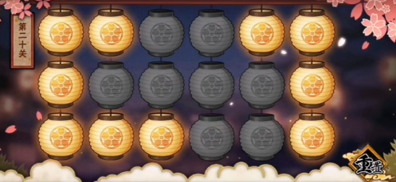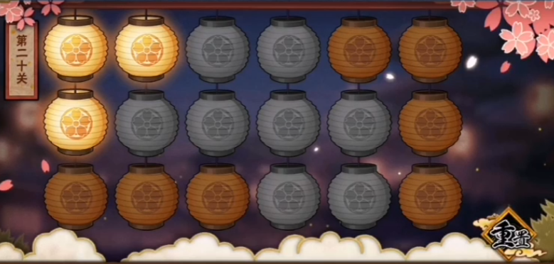 花灯解谜第20关的关键操作顺序为:第一行第一个(左一)、最后一行第二个(左二)、第一行第五个(右二)、最后一行第六个(右一)。按照这个顺序依次点击花灯,即可完成本关挑战。该关卡的核心机制在于每次点击花灯时,会改变目标花灯及其上下左右相邻花灯的明暗状态,需要通过合理的点击顺序使所有花灯达到点亮状态。