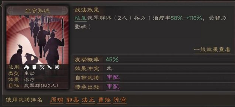 咱们要优先带那些瞬发且发动率高的技能,比如坐守孤城、避实击虚等,这类技能能在战斗中频繁触发,提供稳定的输出或治疗。相反,那些需要准备一回合或者发动率低的技能尽量别带,否则容易拖节奏甚至翻车。如果玩的是单刷流,比如用夏侯惇或赵云单刷,记得给他们配后发制人、自愈这类战法,提高生存能力。工具人武将则带辅助型战法,比如嘲讽或者减伤,为主力创造输出环境。