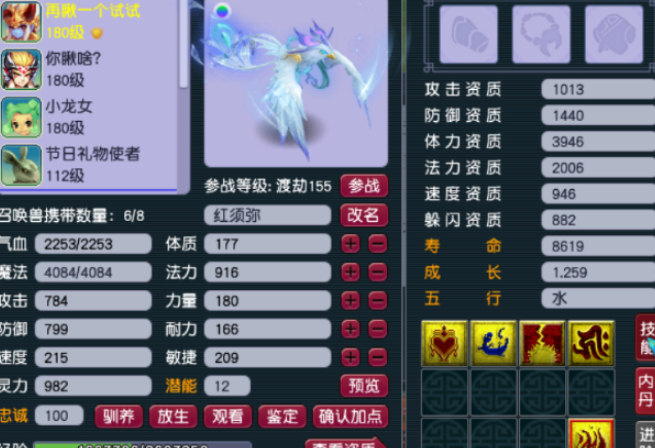 在选择具体的须弥宝宝时,玩家应优先关注技能组合与关键资质。一个能立即投入使用的须弥宝宝,最低限度须同时具备须弥真言、一项群体法术以及高级魔之心这三个技能,这是保证其基础输出能力的铁律。在满足此核心框架后,技能格位上若还能拥有高级法术暴击、感知和高级敏捷等技能,其适用性将更为广泛。资质方面,须弥宝宝主要看重法力资质与速度资质,较高的法力资质直接关联灵力,而速度资质则决定了能否优先于怪物出手;相比之下,成长属性对灵力与速度并无影响,因此可以适当放宽要求。