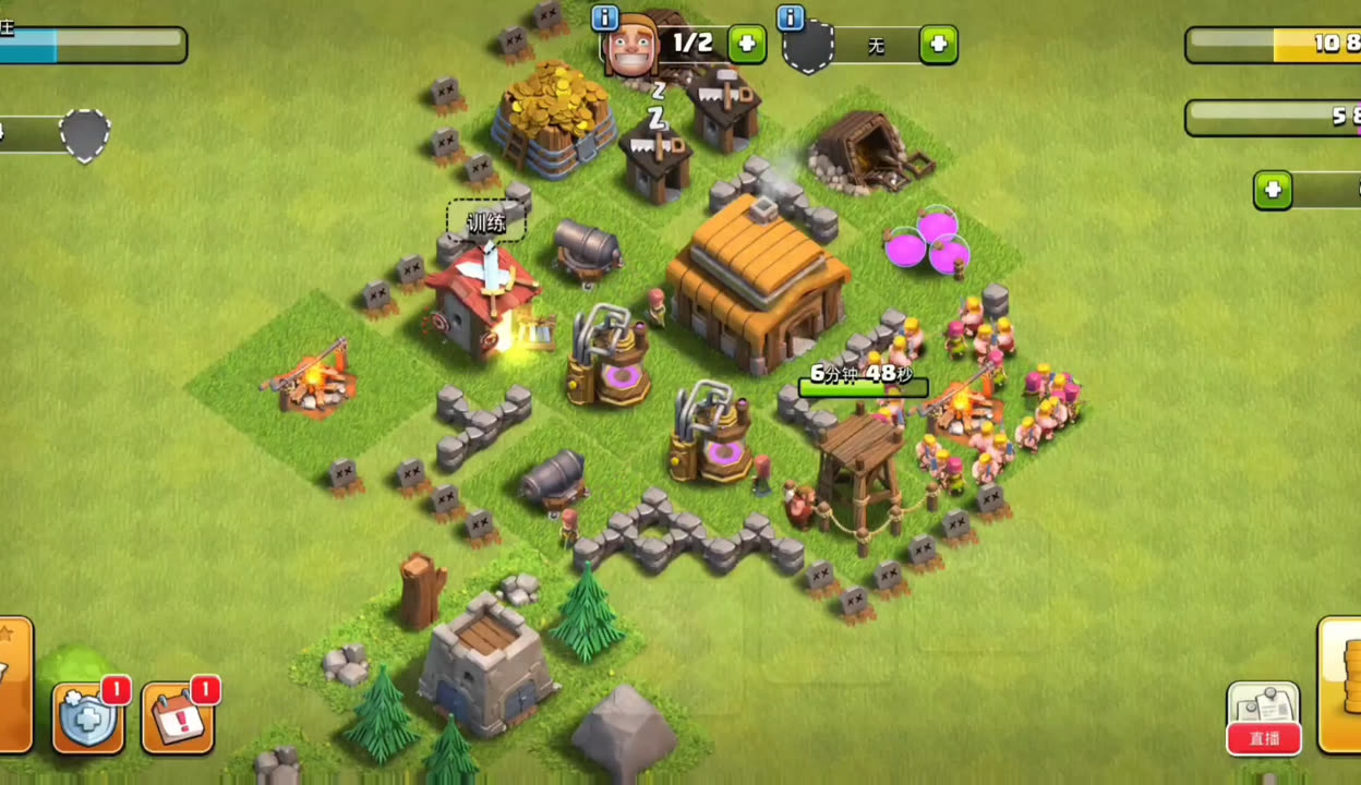 进攻布局的兵种搭配要贴合阵型弱点,地面流派优先选天女矿猪、石法武神,空军流派选狗球、雷龙一字划,资源掠夺用超哥流,清边单位必不可少,用超级野蛮人、弓箭手、小龙清理阵型侧翼建筑,防止主力跑偏,攻城机器选攻城训练营或攻城气球,负责开墙、带援兵、辅助清边,法术搭配遵循核心逻辑,地面流带狂暴、治疗、冰冻、弹跳,空军流带狂暴、冰冻、雷电,前戏阶段用天女组合清理一侧防御,打掉关键防空或地狱塔,为大部队铺路,前戏要控制兵力,保留足够主力推进核心区,避免前戏兵力过多导致后续乏力。