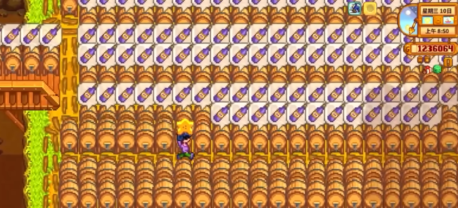 地窖是提升果酒品质的关键设施,需将农舍升级至最高等级后由木匠罗宾建造。地窖内可放置大量陈酿桶,普通果酒放入后需等待14天变为银星品质,继续陈酿可依次升级为金星和铱星品质。品质提升后的果酒售价大幅提高,铱星果酒价格可达普通果酒的2倍。陈酿过程中可用镐子提前取出果酒,但会损失品质提升机会。