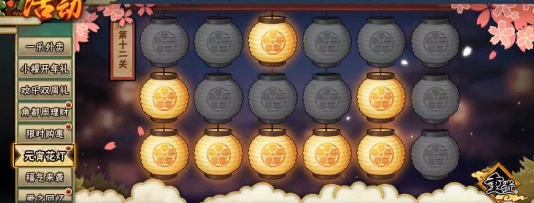 火影忍者第12关花灯解谜的关键操作是依次点击图中标注的花灯1、花灯2和花灯3,这三个花灯的触发顺序没有严格要求。该关卡设计相对简单,玩家只需专注于指定位置的点击即可,无需理会上方已经点亮的灯笼干扰。这种解谜机制基于相邻花灯状态联动的规则,点