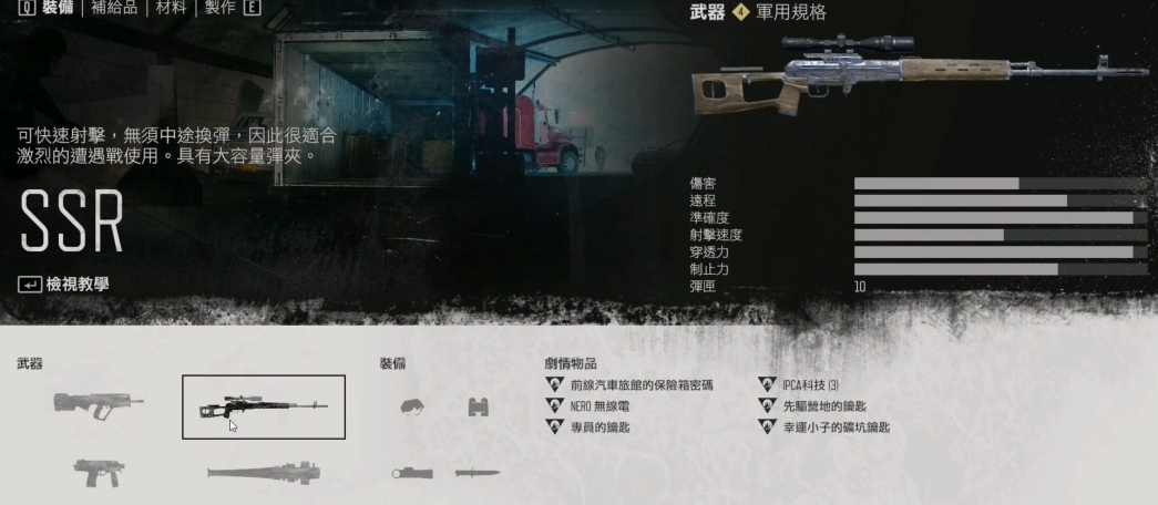 高倍镜是必备配件,推荐4倍或8倍镜以发挥武器最大优势。弹药方面,优先携带穿甲弹或燃烧弹以应对不同敌人类型,普通子弹仅建议作为备用。使用SSR狙击枪时需注意地形与站位。高地或掩体后方能提供安全输出环境,同时避免被尸潮包围。面对暴走潮时,狙击枪更适合用于削减外围敌人数量,而非正面硬抗。摩托车应停放在便于撤退的位置,确保被围攻时能快速脱离战场。