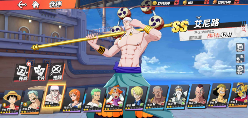 在游戏初期,新手玩家需要重点关注角色培养、资源分配以及任务推进。游戏中的角色分为力、技、心三种属性,相互之间存在克制关系,因此建议每种属性至少培养一名主力角色。初期可获得的SS级角色包括鳄鱼(力)、艾斯(技)、艾尼路(心),若未能抽到这些角